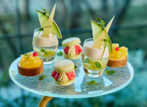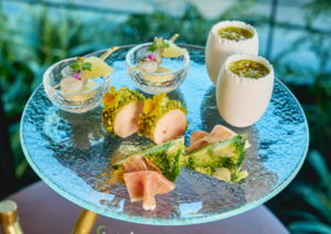 2026年4~6月のTIADアフタヌーンティーのテーマは「❝爽(そう)❞ ~春から夏への移ろい~」。メロンのヴェリーヌ、抹茶のムース、ブロッコリーのテリーヌなど、新緑の爽やかさを表現した「グリーン」の色彩が映えるスイーツ&セイボリーです。